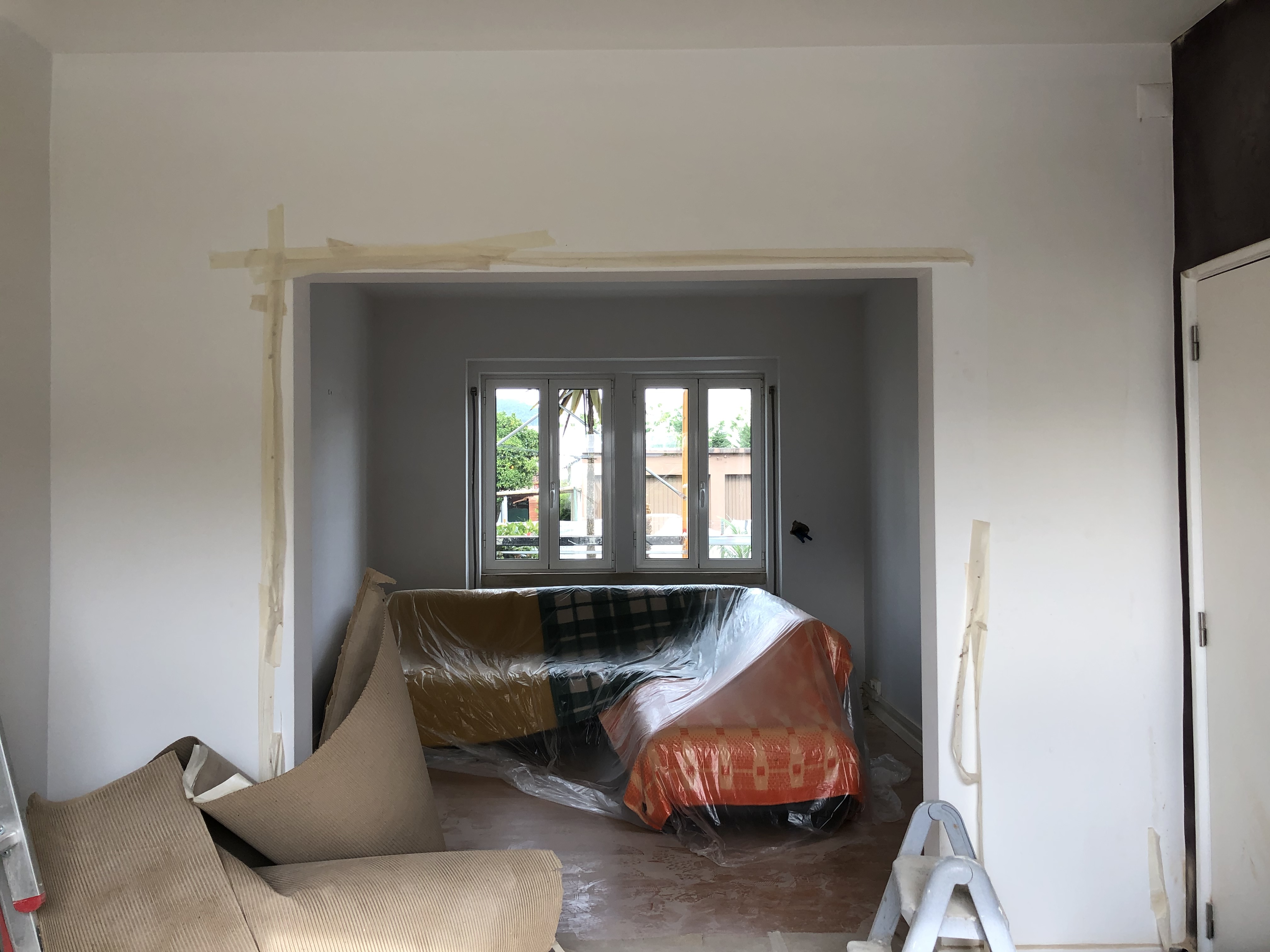 O aumento visual do espaço foi conseguido através das seguintes modificações: eliminação total de um arco que dividia o espaço em sala de jantar e salão; transformação da janela da sala de jantar em uma porta de correr envidraçada (com uma caixilharia de alumínio lacada a branco para condizer com as outras janelas existentes) e pintura das paredes em tom claro. Essas medidas promoveram uma maior entrada de luz, e por consequência, uma maior amplitude do espaço. Melhorou também a ligação do imóvel com seu exterior produzindo assim, uma melhoria no bem-estar e vivencia sentida nesta principal divisão do imóvel.