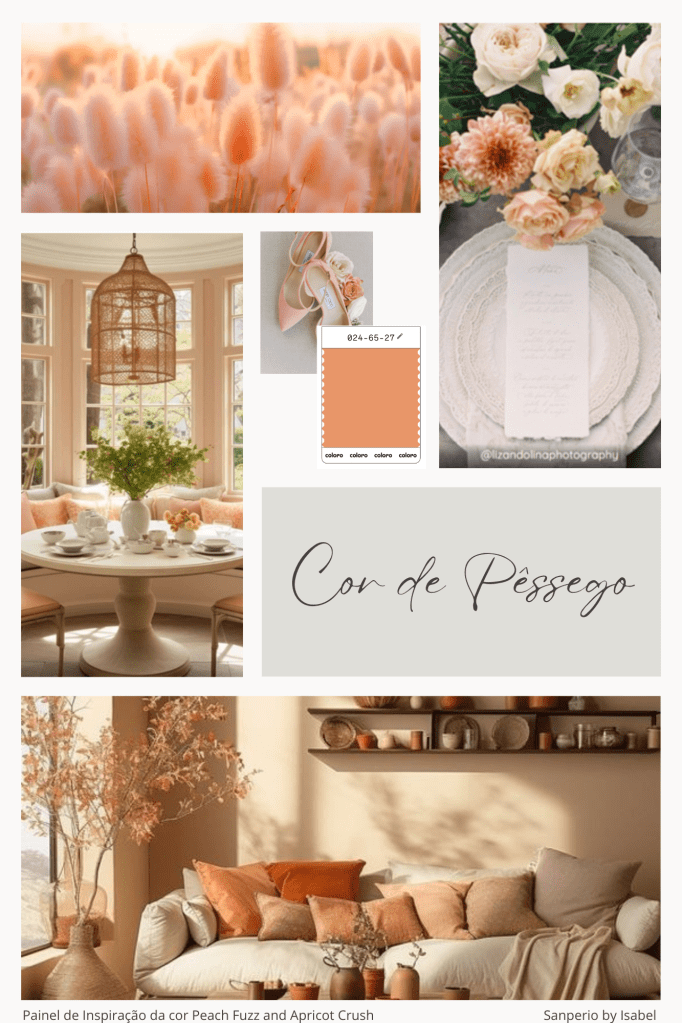 De acordo com os resultados dos estudos desenvolvidos pelos líderes mundiais em previsão de tendências nas indústrias criativas (i.e., moda, design de produto, tecnologia, decoração de interiores e produtos cosméticos/beleza), identificamos a cor de 2024: a Pantone, elegeu uma cor aveludada de pêssego em tom pastel de nome “penugem de pêssego” (i.e., a cor Peach Fuzz ref. 13-1023) [0] e a WGSN em conjunto com a Coloro, um tom mais intenso do mesmo (i.e., a cor Apricot Crush ref. 024-65-27) [1]. Assim sendo, podemos dizer que 2024 veste-se com uma cor quente feminina, de um tom alaranjado rosado, para promover o aconchego, a positividade e o equilíbrio que a nossa sociedade tanto precisa em tempos de incerteza [1]. Essas últimas palavras, escritas pela empresa Londrina WGSN, indicam que essa cor transmite o bem-estar que as pessoas tanto procuram. Assim sendo, introduzi-la nos nossos lares, será um início para termos um espaço não somente mais atual, mas sobretudo, mais acolhedor. Mas atenção, sendo um tom intemporal, facilmente poderá deixar o seu espaço ultrapassado se não for introduzido de uma forma contemporânea. Então quer saber como poderá o introduzir? Siga-nos! Porque no próximo post, iremos dar-lhe algumas sugestões. Até lá, deixamos-vos com um painel de inspiração para dar-vos a conhecer essa doce cor, que já andava entre nós há muito tempo, mas que em 2024, ira-se destacar.