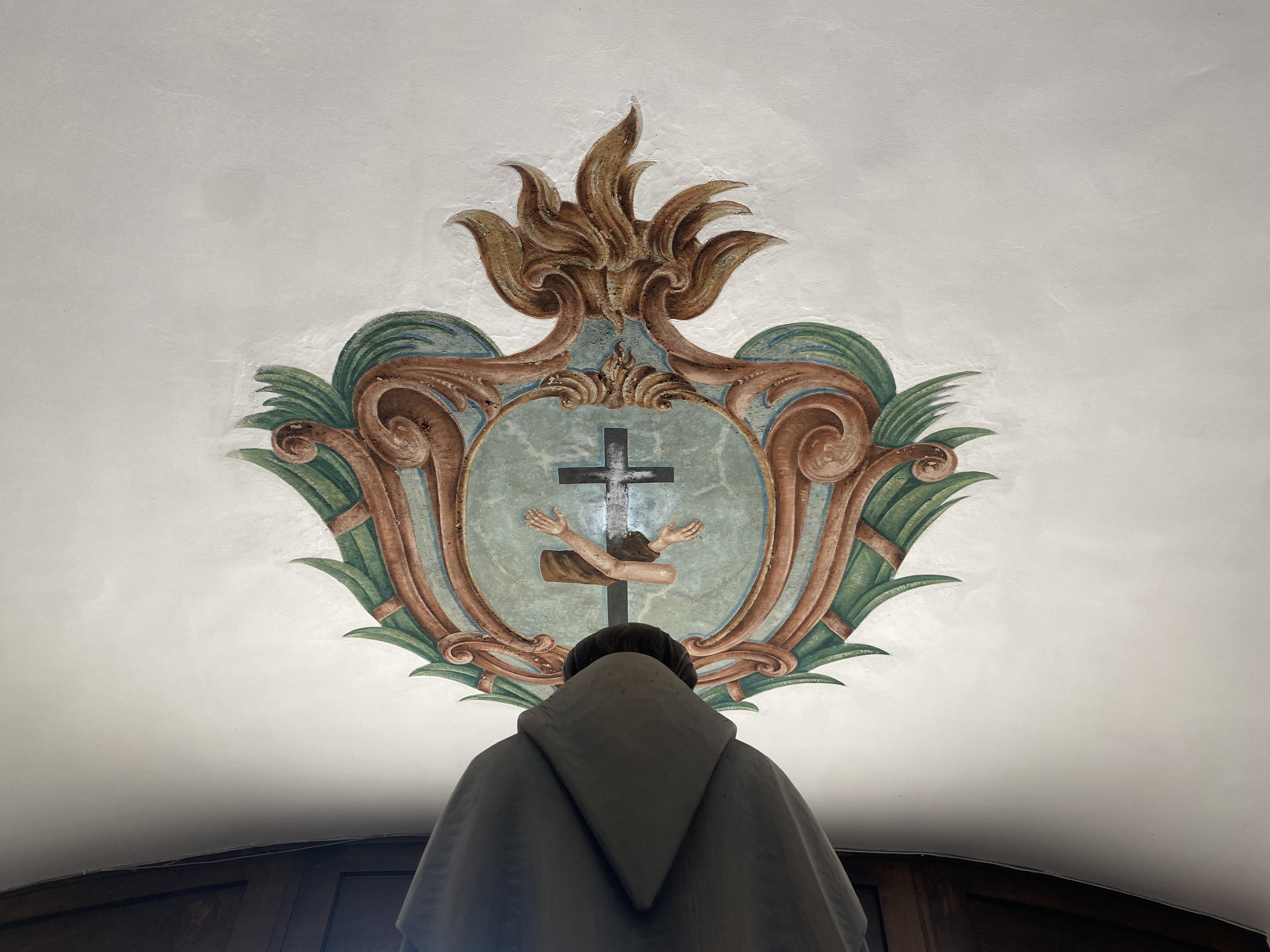 Do seu lado direito, encontra uma capelinha dedicada à Nossa Senhora das Dores, onde avista um Frei Franciscano Conventual pelas frestas do seu gradeamento: um jovem, vestido com um hábito castanho e um lenço roxo encontra-se sentado em frente a uma secretária de estilo gótico, a abrir um tablet, rodeado de arte sacra, enquanto que espera pelos fiéis que desejam confessar-se. O cenário o impressiona…nunca tinha pensado encontrar no alto desta colina, e logo ao entrar, alguém pronto para o ajudar com uma atitude aparentemente atual. Entusiasmado, abre timidamente a porta desse confessionário temporário, e com gentileza, o Frei Franciscano o convida a sentar-se. Uma conversa inicia-se, e uma fascinante história se desenrola mostrando que, apesar de já ter passado mais de 800 anos, os desafios pessoais encarados por Santo António, permanecem mais atuais do que nunca.