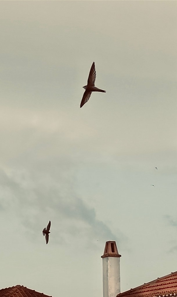 Os gritos dessa ave sempre me fazem em início de primavera levantar o olhar, como que para confirmar a sua chegada de África que num sorriso de alívio, observo o voo desses pequenos mestres dos ares, por saber que este ano, também me protegeram das malvadas picadelas de mosquitos, como que para agradecer de não terem destruído o seu ninho que com o seu parceiro construiu e para o qual, em todas as primaveras, regressa. Esse regresso à sua terra natal tem um fraterno propósito: o de se reunir com o seu amado já que desde outubro passado, não têm estado juntos; pois os casais se separam em outubro para migrar em busca de alimento, percorrendo milhares de quilómetros até África, para em março se reencontrar de novo, exatamente onde a sua história se iniciou; uma história de facto cheia de superação e romantismo.